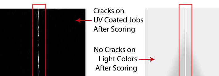 On a perfect bound or double loop cover, you may print the entire area of thespine, but be sure to consult with us beforehand. You’ll need to measure the spine using a bulking dummy to be sure of the exact width. Ink coverage that traps to scoresor bleeds across the spine will also need close attention to ensure proper registrationand to avoid cracking. In addition, perfect bound books will need four scores on the cover [two backbone plus two hinge] for durability and to protect any glued areas when opening. The paper you choose is also a consideration for perfect bind books; text and cover pages must be parallel with the spine or the covers may wrinkle.Cracking on my scoring job?